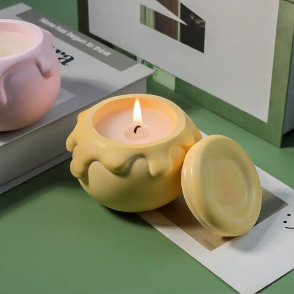 The Honey Jar Candle is designed to resemble a classic honey pot, complete with a lid for a charming rustic look. It adds a warm, cozy vibe to any space with its sweet, inviting aesthetic.